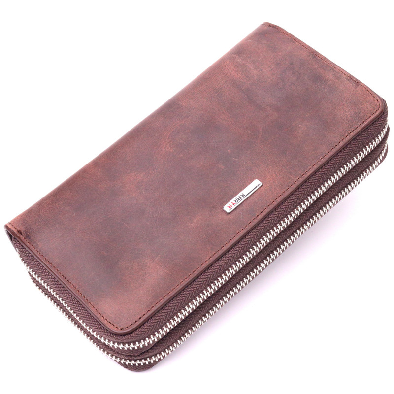 Превосхожный мужской клатч из винтажной натуральной кожи KARYA Коричневый