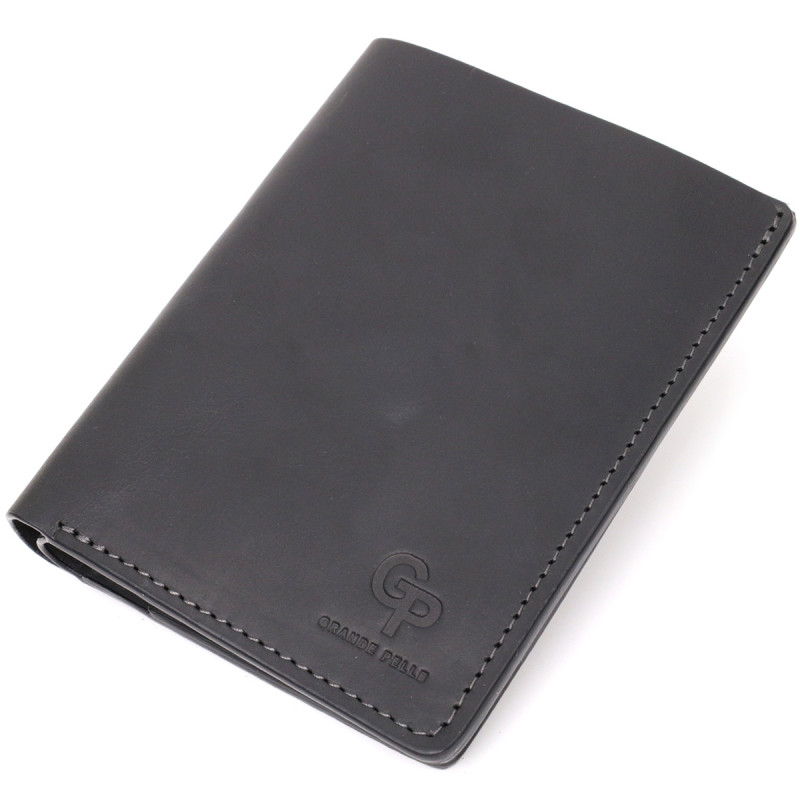 Добротное кожаное портмоне с держателем для Apple AirTag GRANDE PELLE Черный