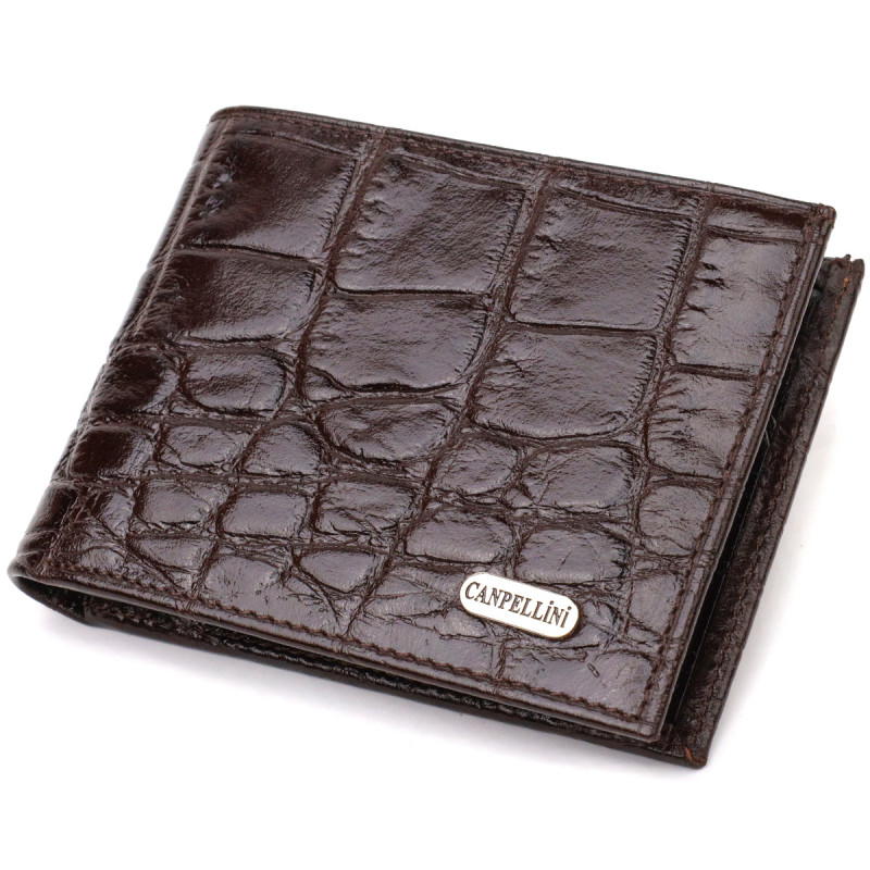 Фактурный мужской бумажник для денег из натуральной кожи с тиснением под крокодила CANPELLINI Коричневый