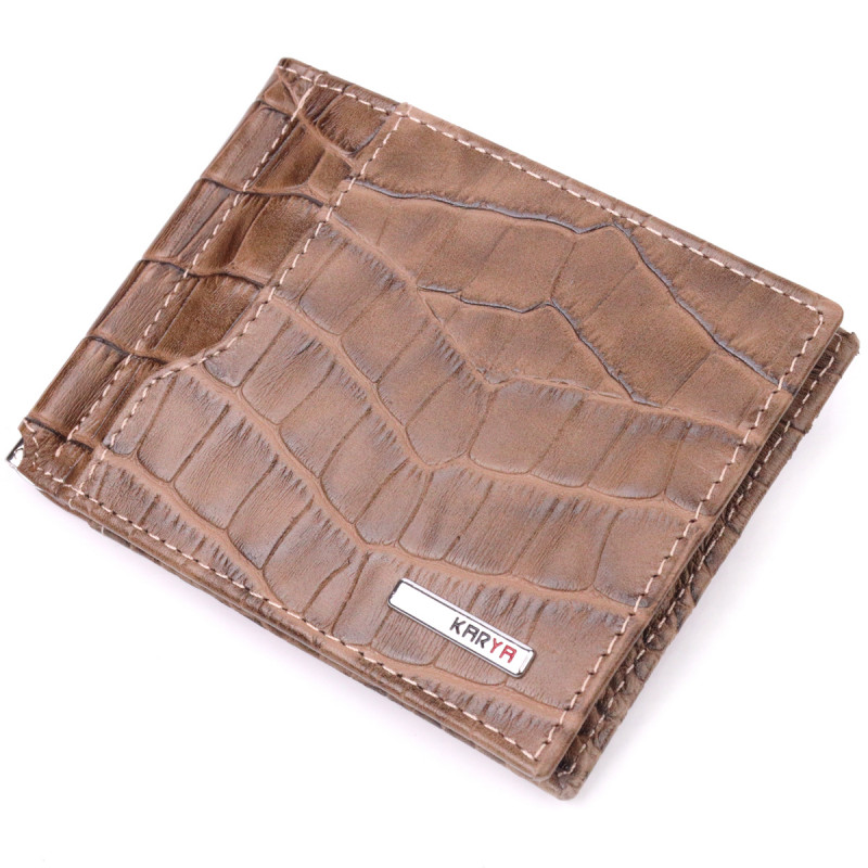 Фактурный мужской зажим из натуральной кожи с тиснением под крокодила KARYA Бежевый