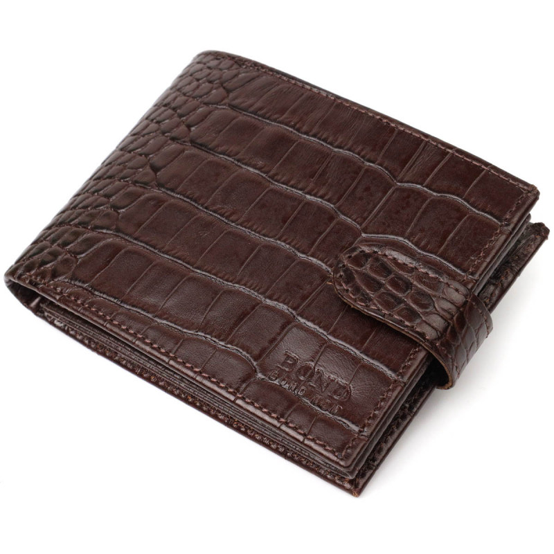 Функциональный бумажник среднего размера для мужчин из натуральной кожи с тиснением под крокодила BOND Коричневый
