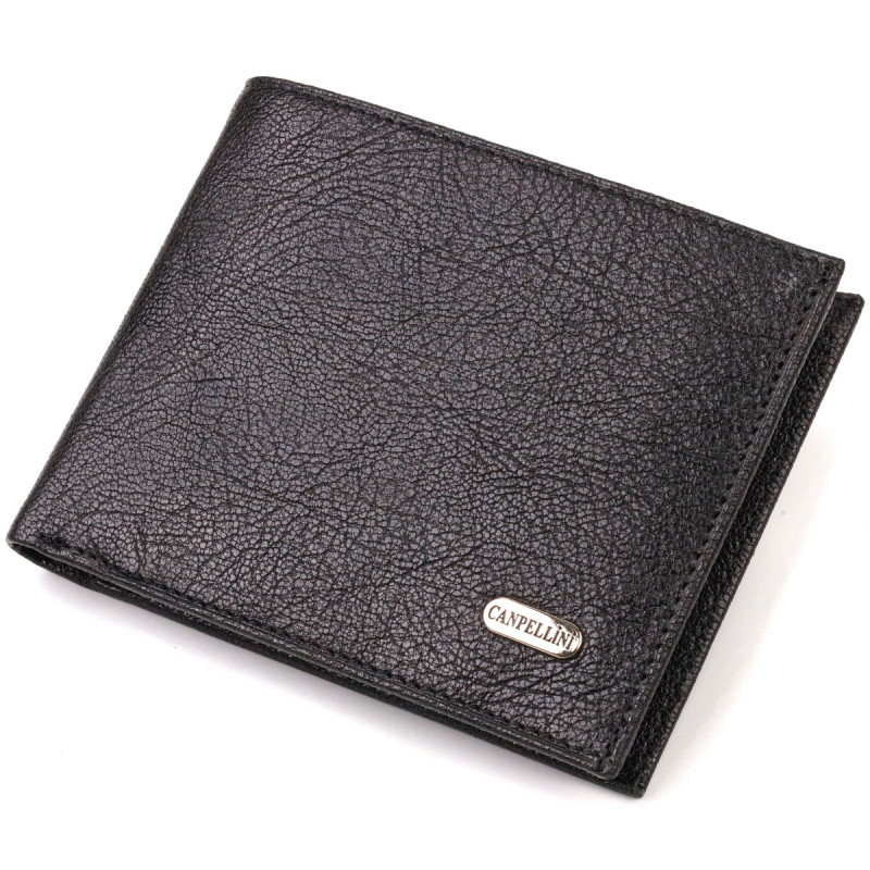 Бумажник для мужчин без застежки из натуральной кожи CANPELLINI Черный