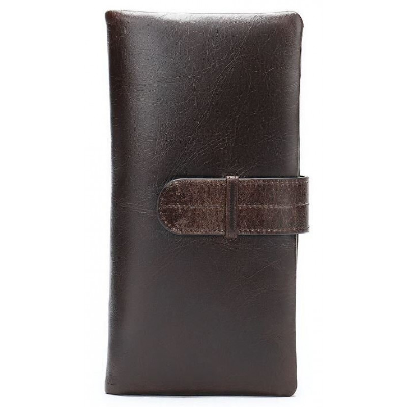 Внутри аксессуар кожаный в сочетании с текстилем. Вместительный вертикальный кошелек спокойно поместится в вашу сумку и отлично подойдет к вашему образу. Дизайн кошелька изготовлен в классическом стиле и продуман до мелочей для вашего удобства. Кошелек дополнен разнообразными карманами, чтоб ваши вещи не путались и не мешались. По краям аксессуар прошит коричневой строчкой в тонах аксессуара.