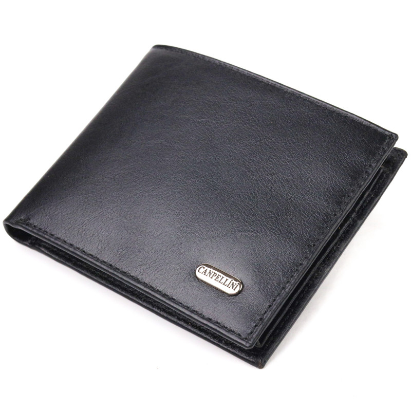 Качественный кошелек для мужчин в два сложения из натуральной гладкой кожи CANPELLINI Черный