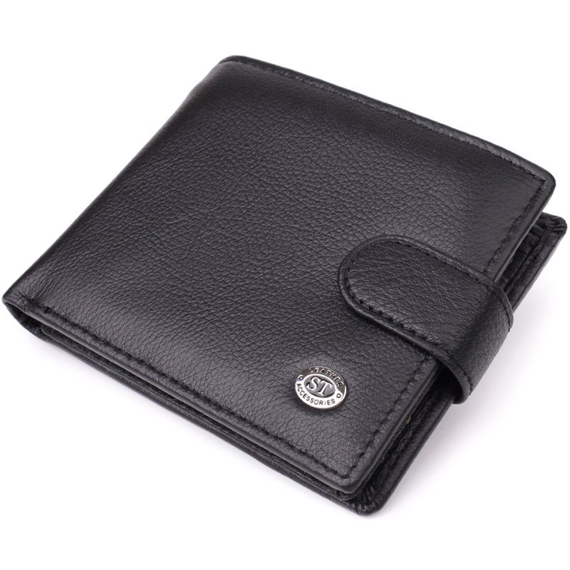 Классический мужской бумажник горизонтального формата из натуральной кожи ST Leather Черный