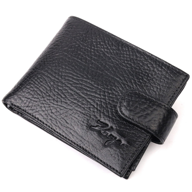 Классический мужской кошелек с хлястиком из натуральной кожи KARYA Черный
