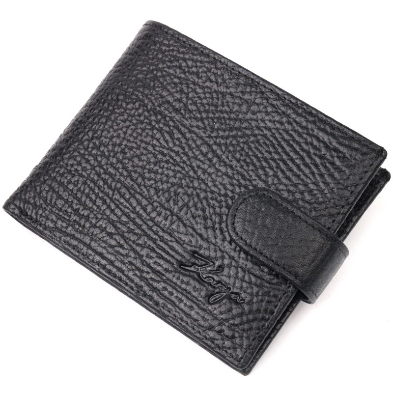 Классический мужской кошелек с хлястиком из натуральной кожи KARYA Черный