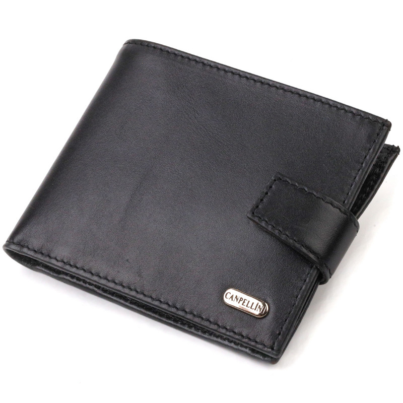 Классический мужской бумажник из натуральной гладкой кожи CANPELLINI Черный