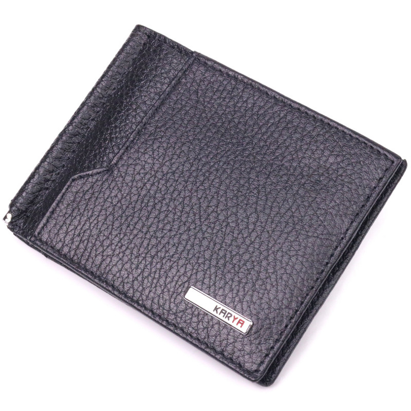 Классический мужской зажим из натуральной зернистой кожи KARYA Черный