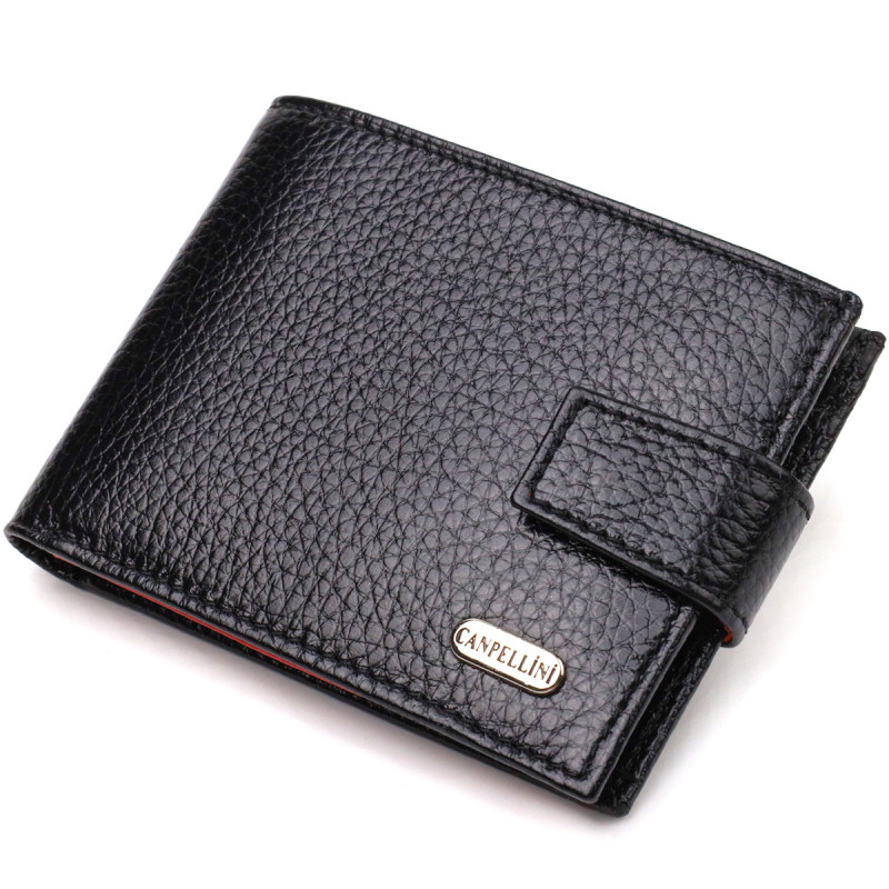 Компактное портмоне для мужчин в комбинации двух цветов из натуральной кожи CANPELLINI Черное