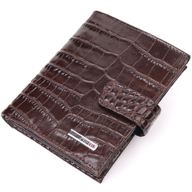 Компактный мужской кошелек из натуральной кожи с тиснением под крокодила KARYA Коричневый