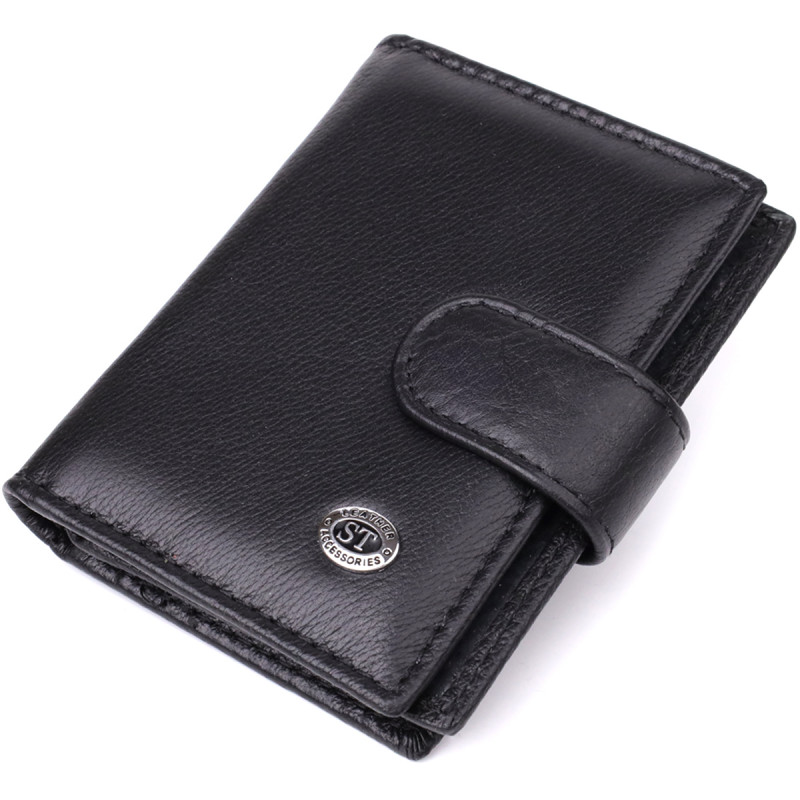 Компактный мужской бумажник вертикального формата из натуральной кожи ST Leather Черный