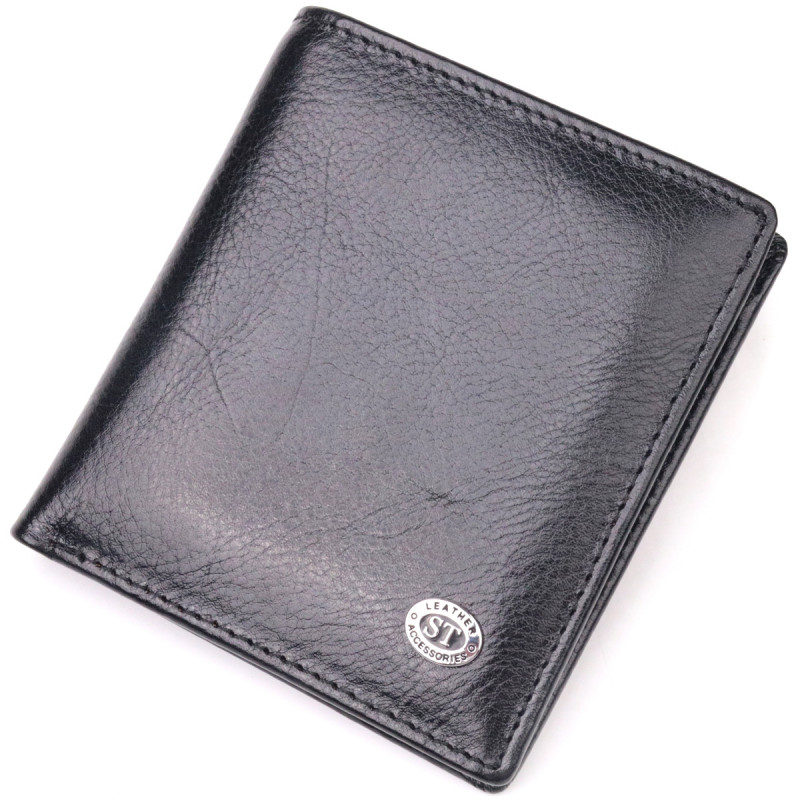 Компактный бумажник для денег из натуральной гладкой кожи ST Leather Черный