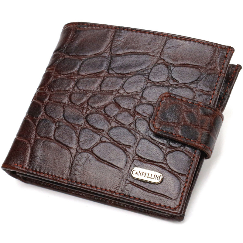 Купюрник для мужчин горизонтального формата из натуральной кожи с тиснением под крокодила CANPELLINI Коричневый