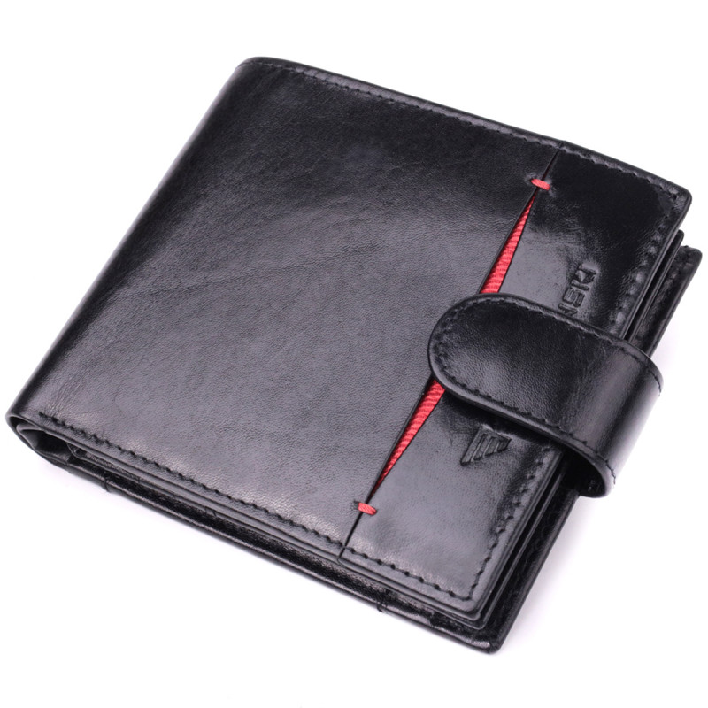 Эксклюзивный мужской кошелек из качественной натуральной кожи с красным акцентом на лицевой стороне. Аксессуар удобного размера, аккуратно пошит, все строчки ровные, имеет практичный функционал. Такой кошелек сочетает в себе стиль, функционал и неповторимый стиль, идеально подходящий для современного мужчины любого возраста, который ценит удобство и стиль в одном изделии.