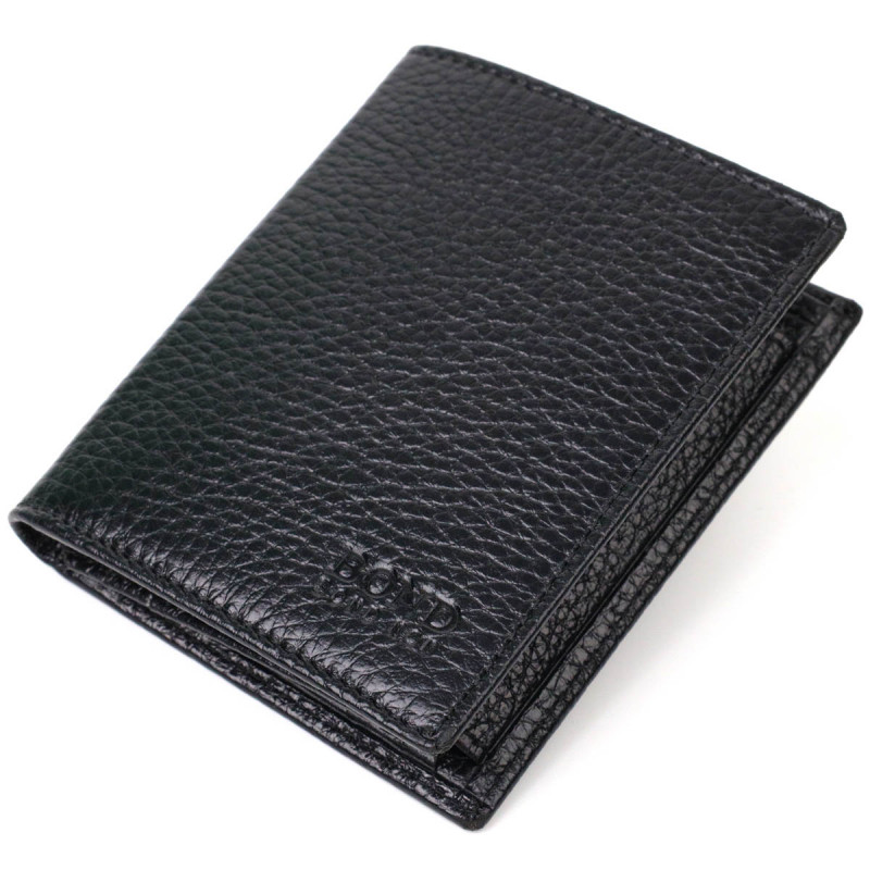 Миниатюрный мужской бумажник из натуральной кожи BOND Черный