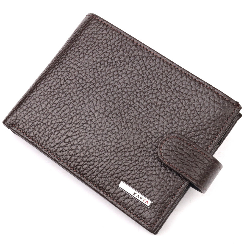 Вместительное мужское портмоне с хлястиком из натуральной кожи KARYA Коричневый