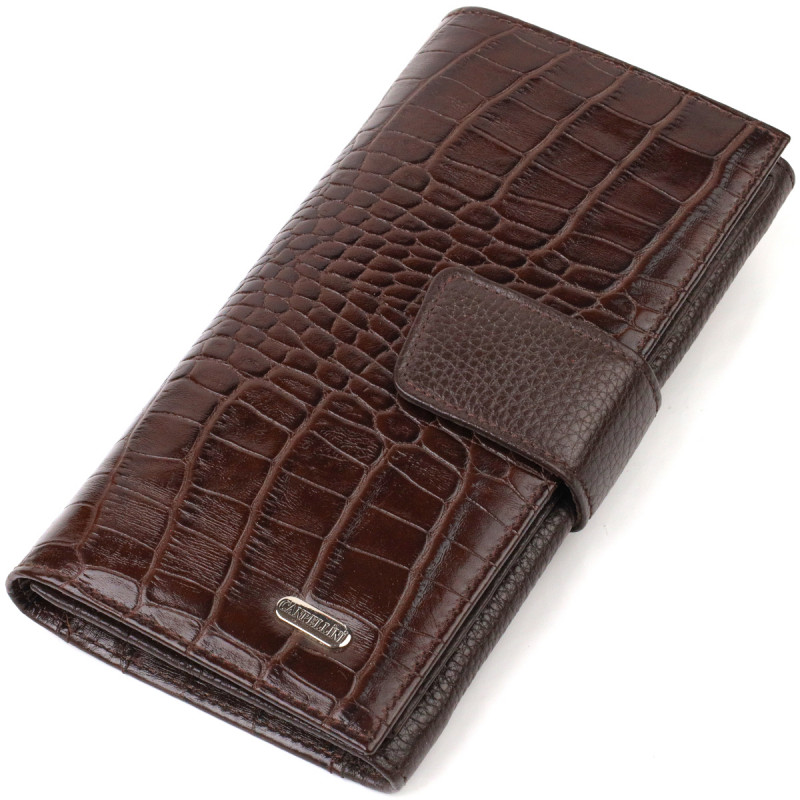 Вместительное вертикальное мужское портмоне из натуральной кожи с тиснением под крокодила CANPELLINI Коричневое