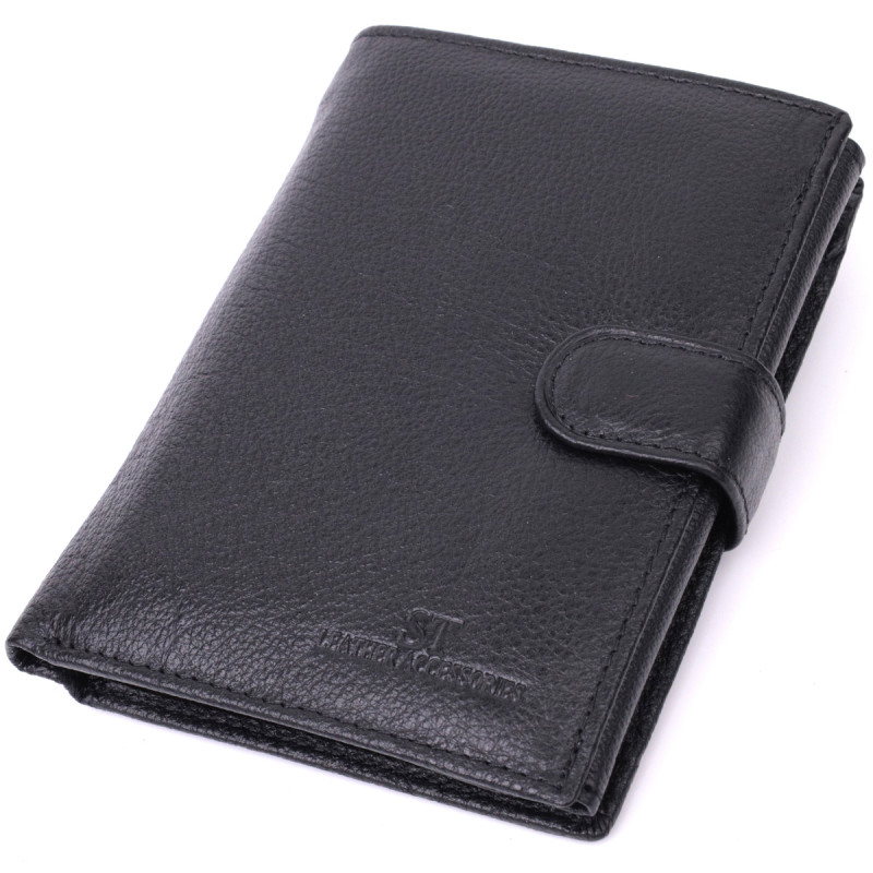 Вместительный мужской бумажник с блоком под документы из натуральной кожи ST Leather Черный