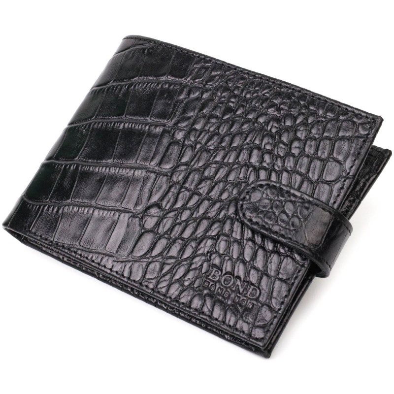Модный бумажник для мужчин из натуральной фактурной кожи с тиснением под крокодила BOND Черный