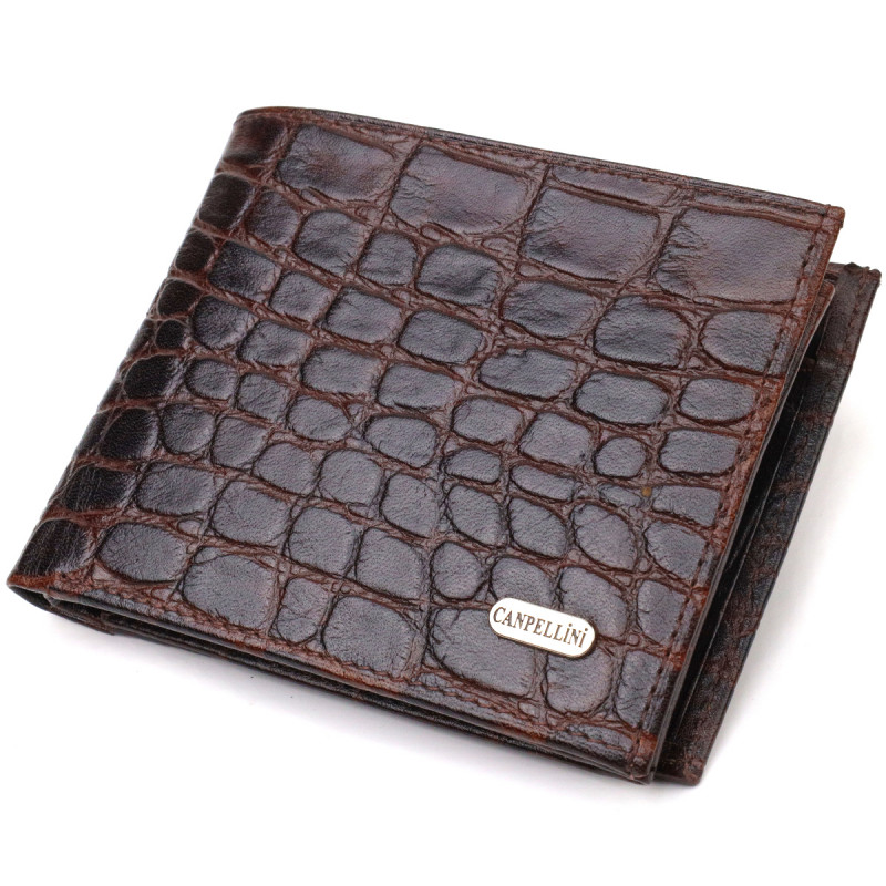 Модный горизонтальный мужской бумажник среднего размера из натуральной кожи с тиснением под крокодила CANPELLINI Коричневый