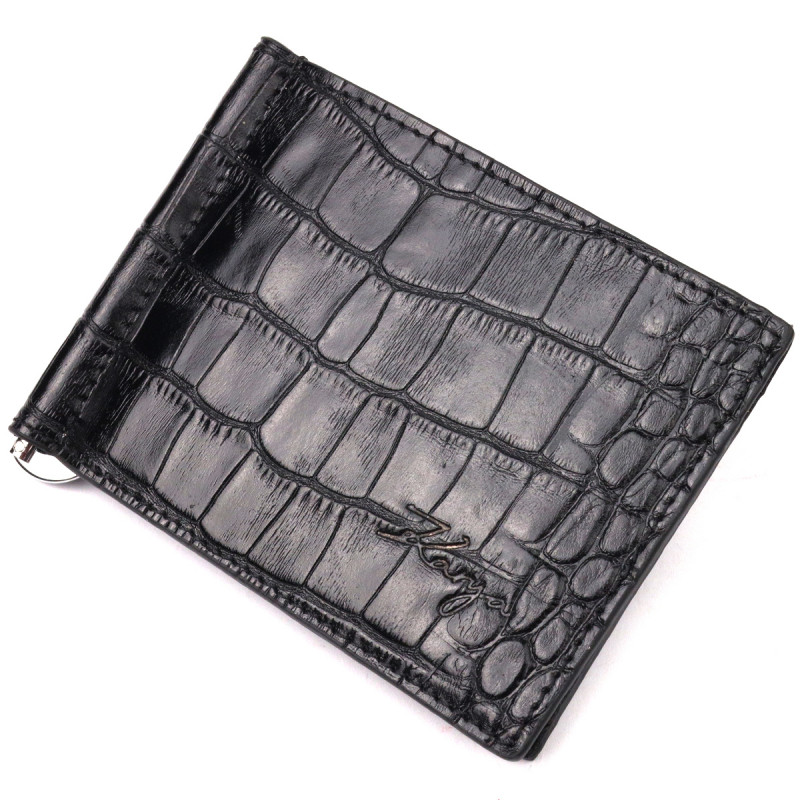 Надежный мужской зажим из фактурной кожи под рептилию KARYA Черный