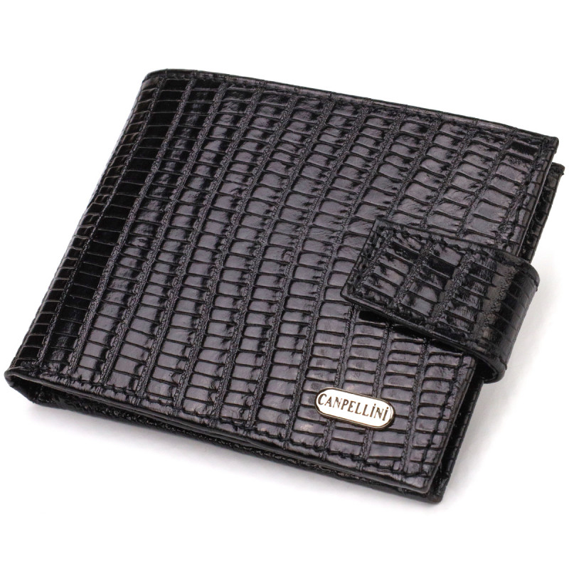 Небольшой фактурный мужской бумажник из натуральной кожи с тиснением CANPELLINI Черный
