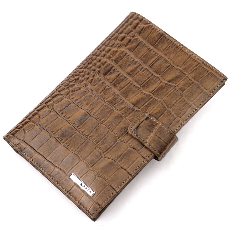 Необычное мужское портмоне с хлястиком из натуральной кожи с тиснением под крокодила KARYA Светло-коричневый