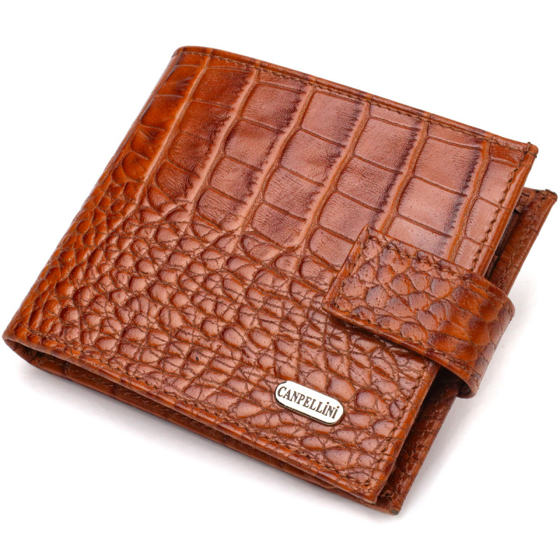 Необычный горизонтальный кошелек для мужчин из натуральной кожи с тиснением под крокодила CANPELLINI Рыжий