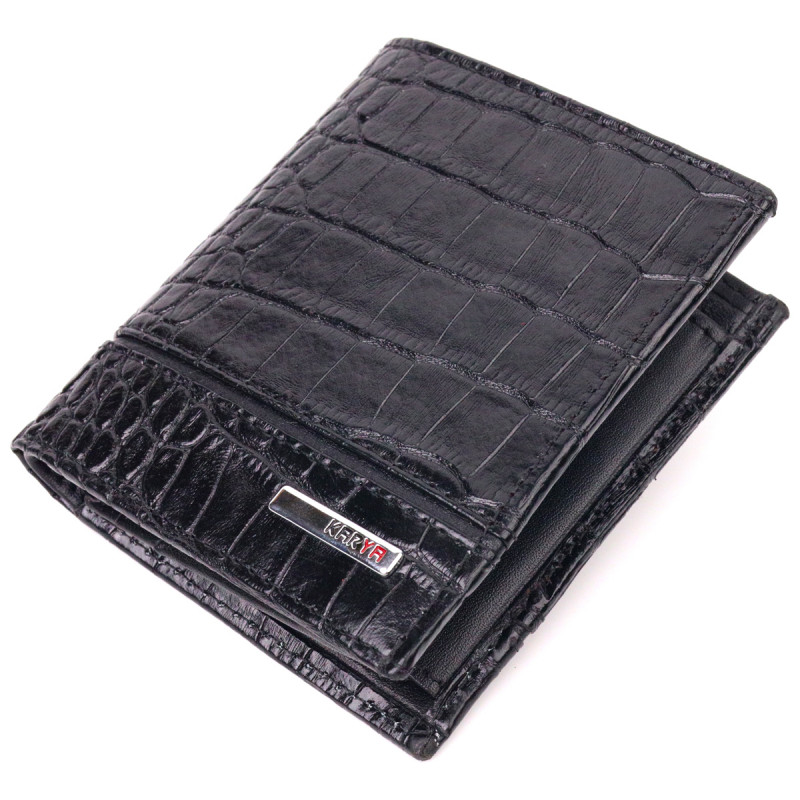 Оригинальное портмоне для мужчин из натуральной кожи с тиснением под крокодила KARYA Черный