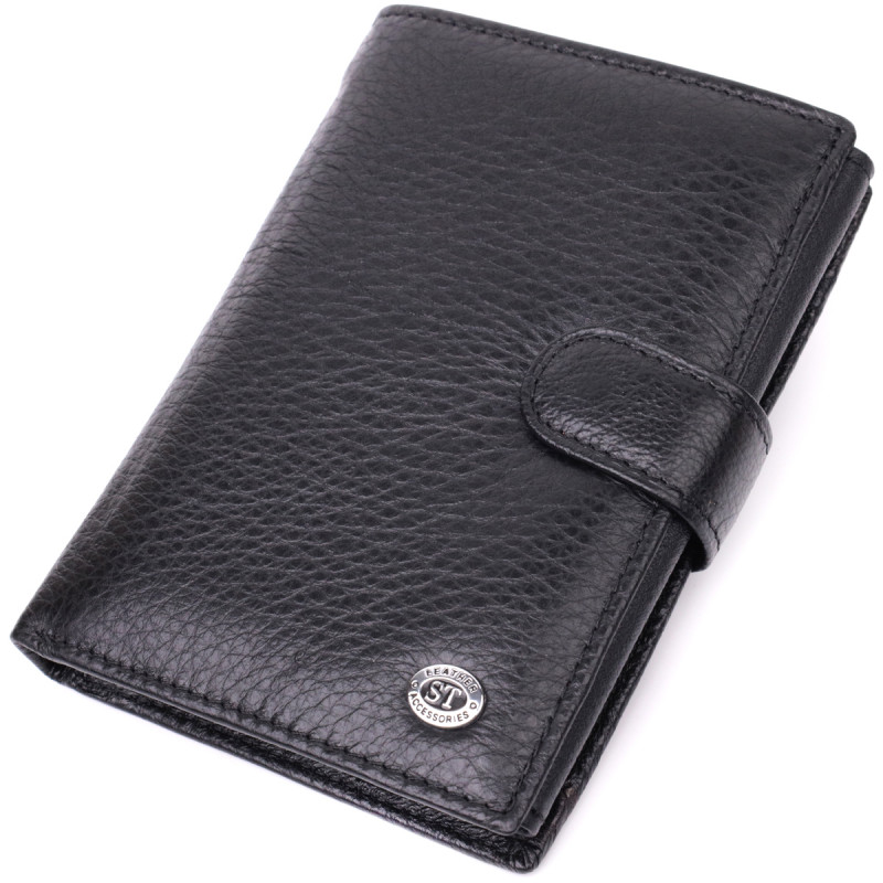Практичный мужской бумажник с блоком под документы из натуральной кожи ST Leather Черный