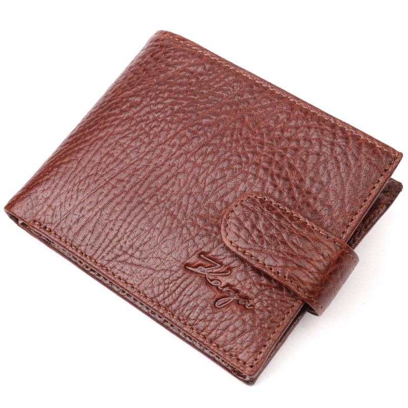 Практичный мужской кошелек с хлястиком из натуральной кожи KARYA Светло-коричневый