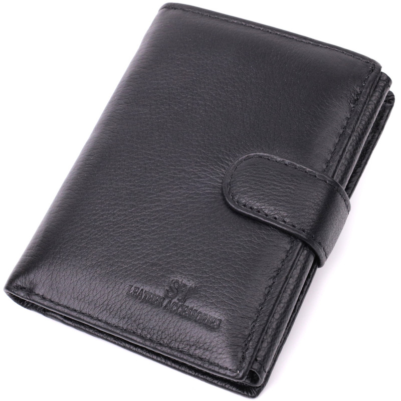 Солидный мужской бумажник вертикального формата из натуральной кожи ST Leather Черный