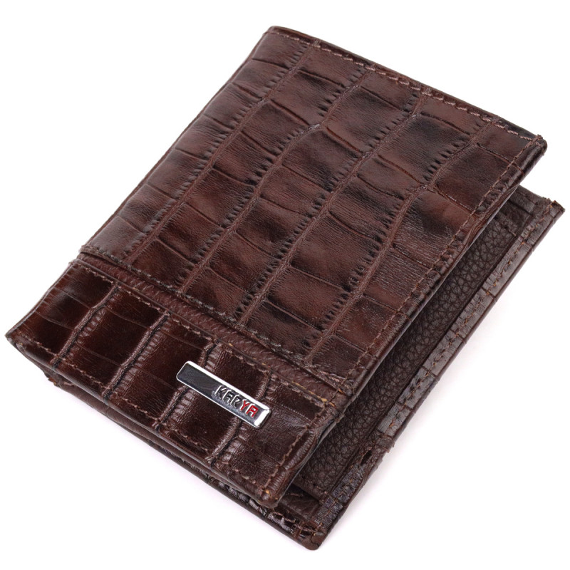 Стильное портмоне для мужчин из натуральной кожи с тиснением под крокодила KARYA Коричневый