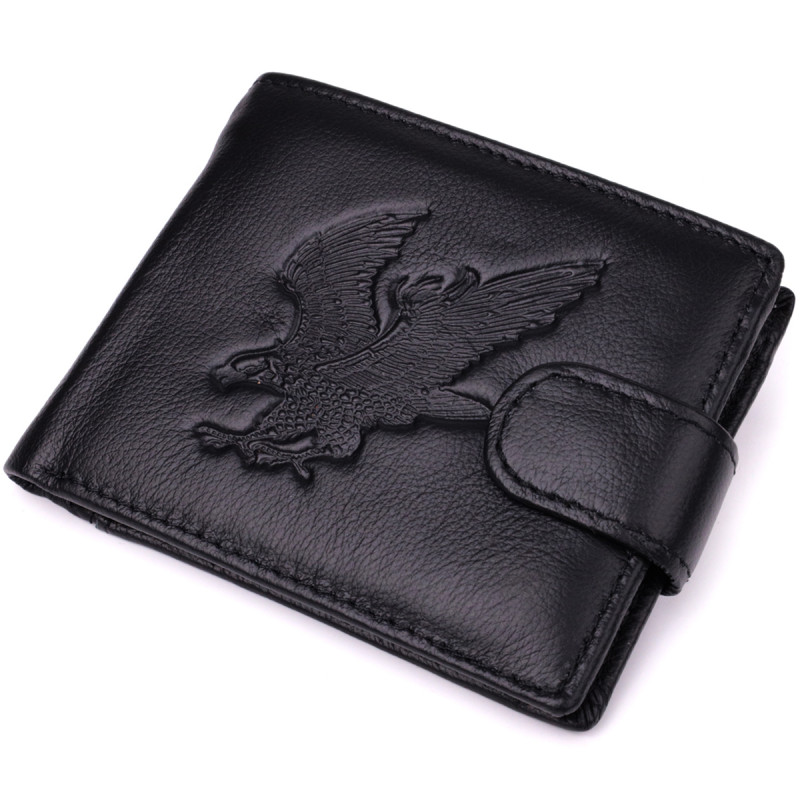 Стильный мужской бумажник с тиснением орла на лицевой стороне из натуральной кожи Vintage sale_ Черный