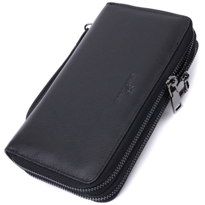 Стильный мужской клатч на два отделения из натуральной кожи ST Leather Черный