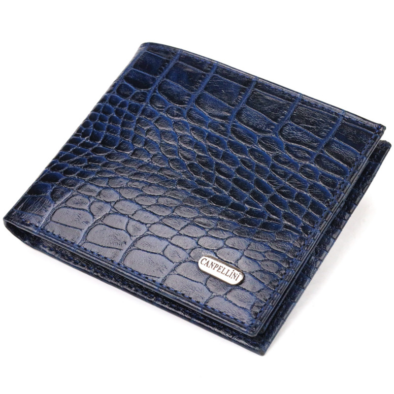 Стильный кошелек для мужчин в два сложения из натуральной фактурной кожи с тиснением под крокодила CANPELLINI Синий