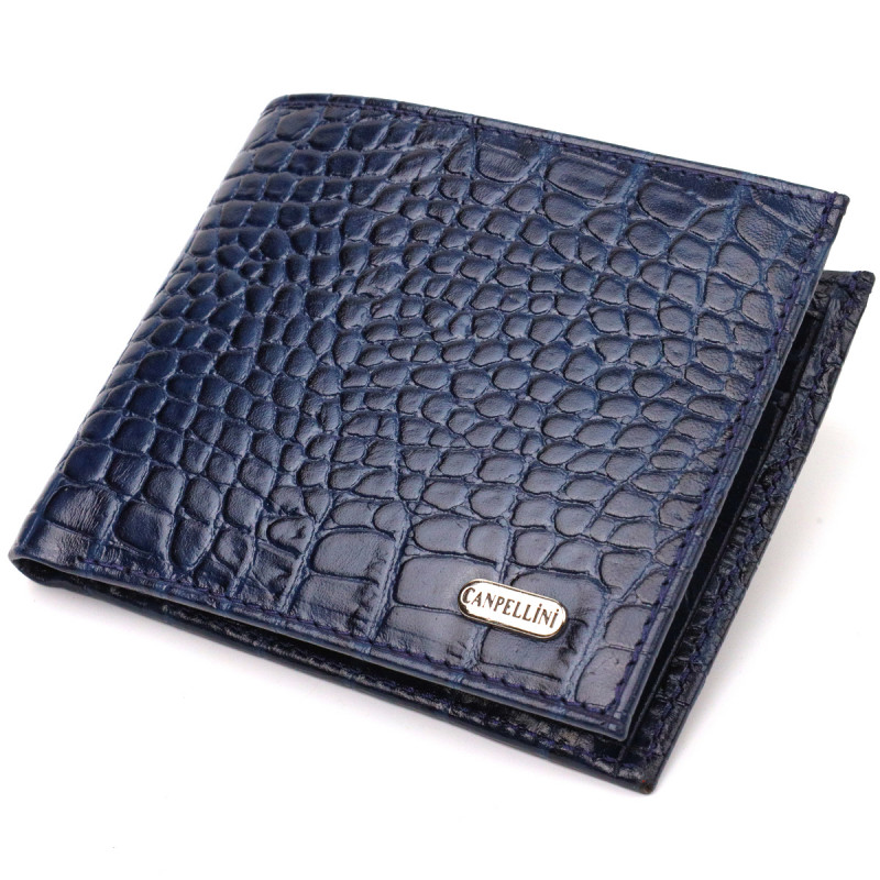 Интересное мужское портмоне из натуральной фактурной кожи CANPELLINI Синее