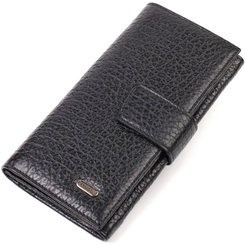 Интересное вертикальное мужское портмоне из натуральной крупнозернистой кожи CANPELLINI Черное