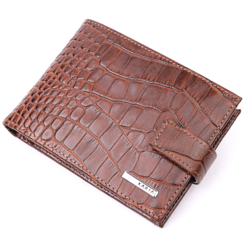 Интересный мужской кошелек из натуральной кожи с тиснением под крокодила KARYA Коричневый