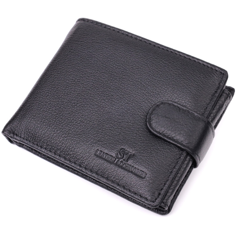 Интересный бумажник с блоком под документы из натуральной кожи ST Leather Черный
