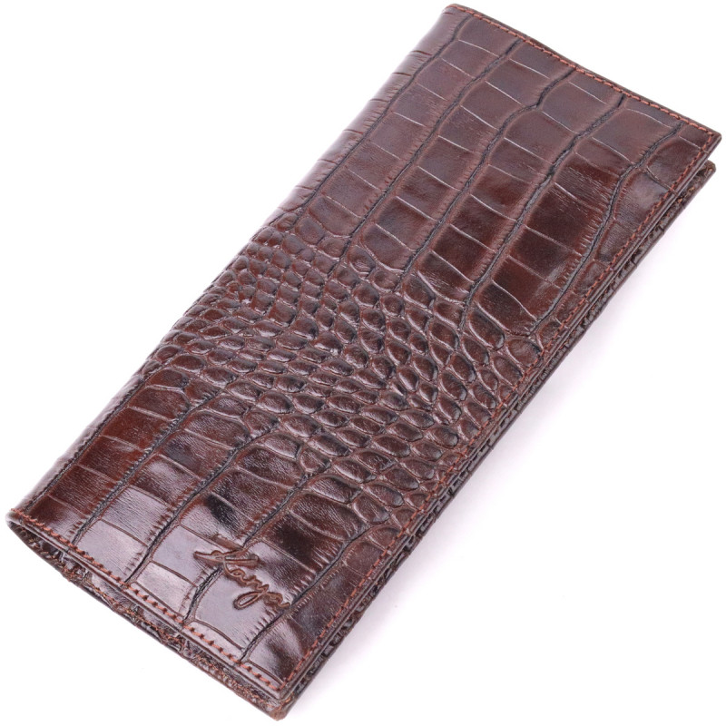 Интересный вертикальный бумажник из натуральной фактурной кожи KARYA Коричневый