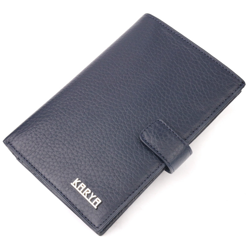 Вертикальное мужское портмоне с хлястиком из натуральной кожи KARYA Синий