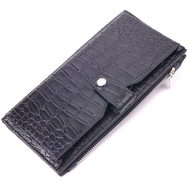 Вертикальное мужское портмоне из натуральной кожи с тиснением под крокодила KARYA Черный