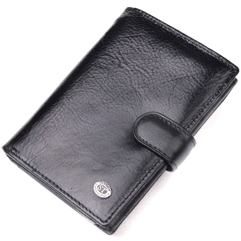Вертикальный мужской бумажник из натуральной кожи ST Leather Черный