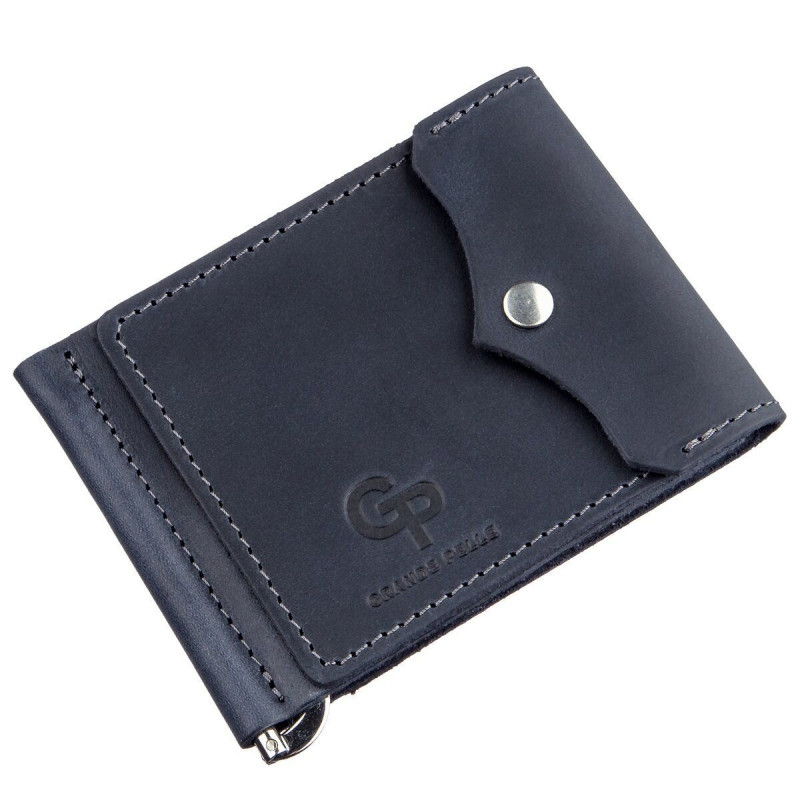 Качественный зажим из натуральной кожи GRANDE PELLE Синий
