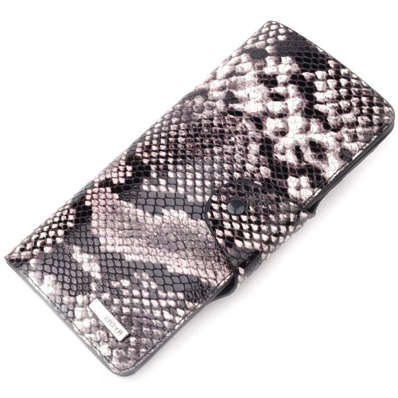 Многофункциональное женское портмоне из натуральной фактурной кожи под змею KARYA Черный