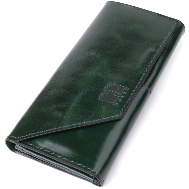 Добротный кошелек в два сложения из натуральной гладкой кожи GRANDE PELLE Зеленый