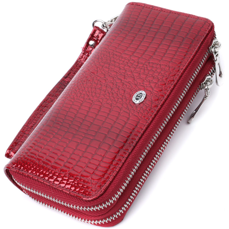 Фактурный клатч на два отделения из лакированной натуральной кожи ST Leather Красный
