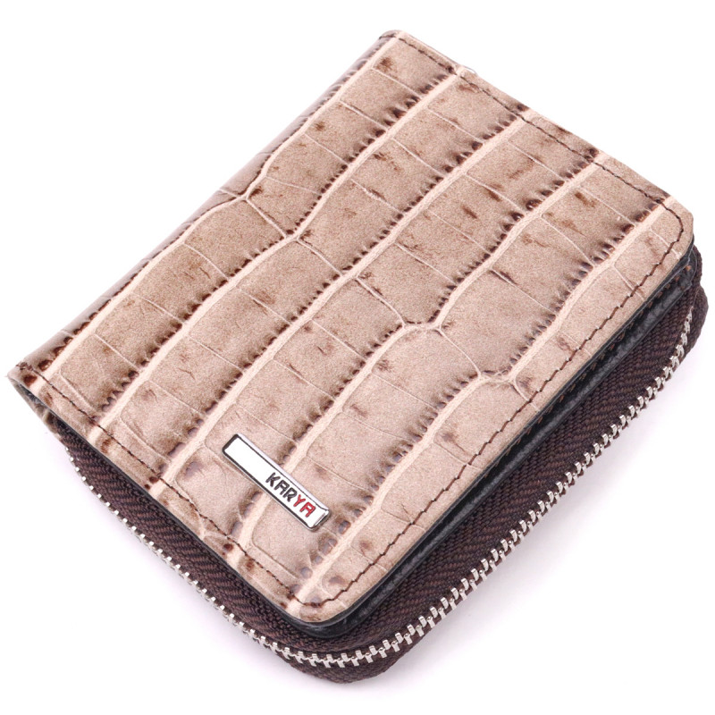 Фактурный женский кошелек с монетницей из натуральной кожи с тиснением под крокодила KARYA Бежевый